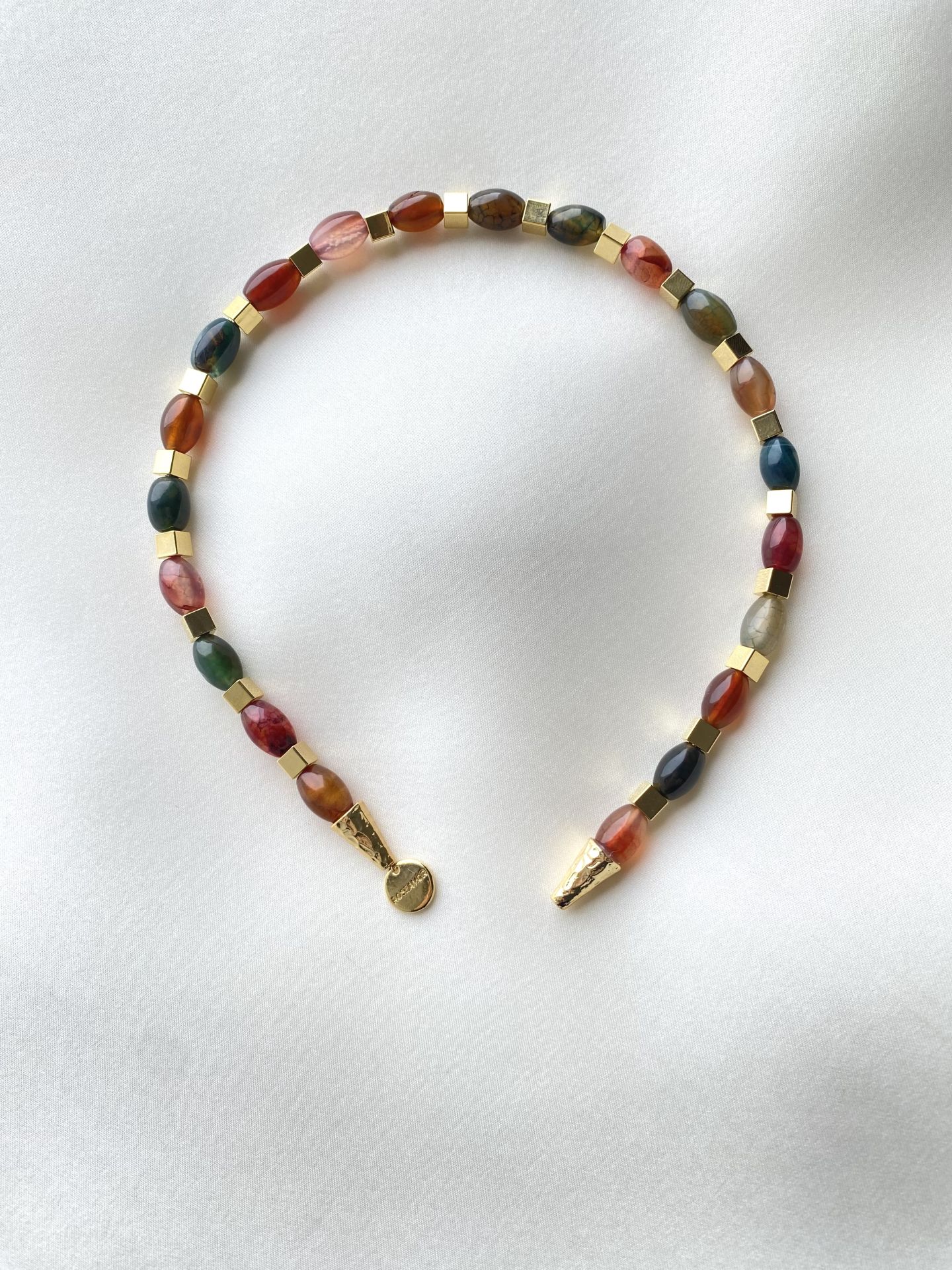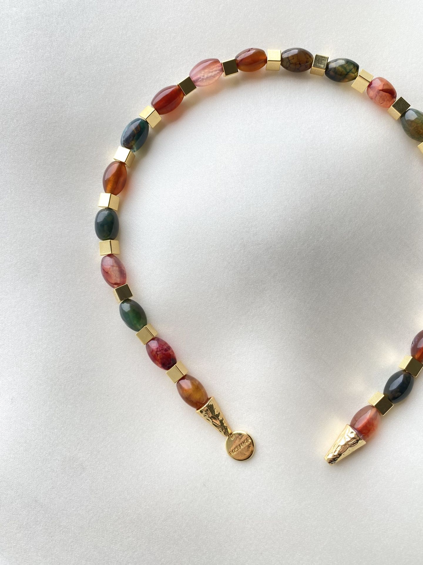 Doğal Akik taşları altın kaplama küplerle tasarlanmıştır.