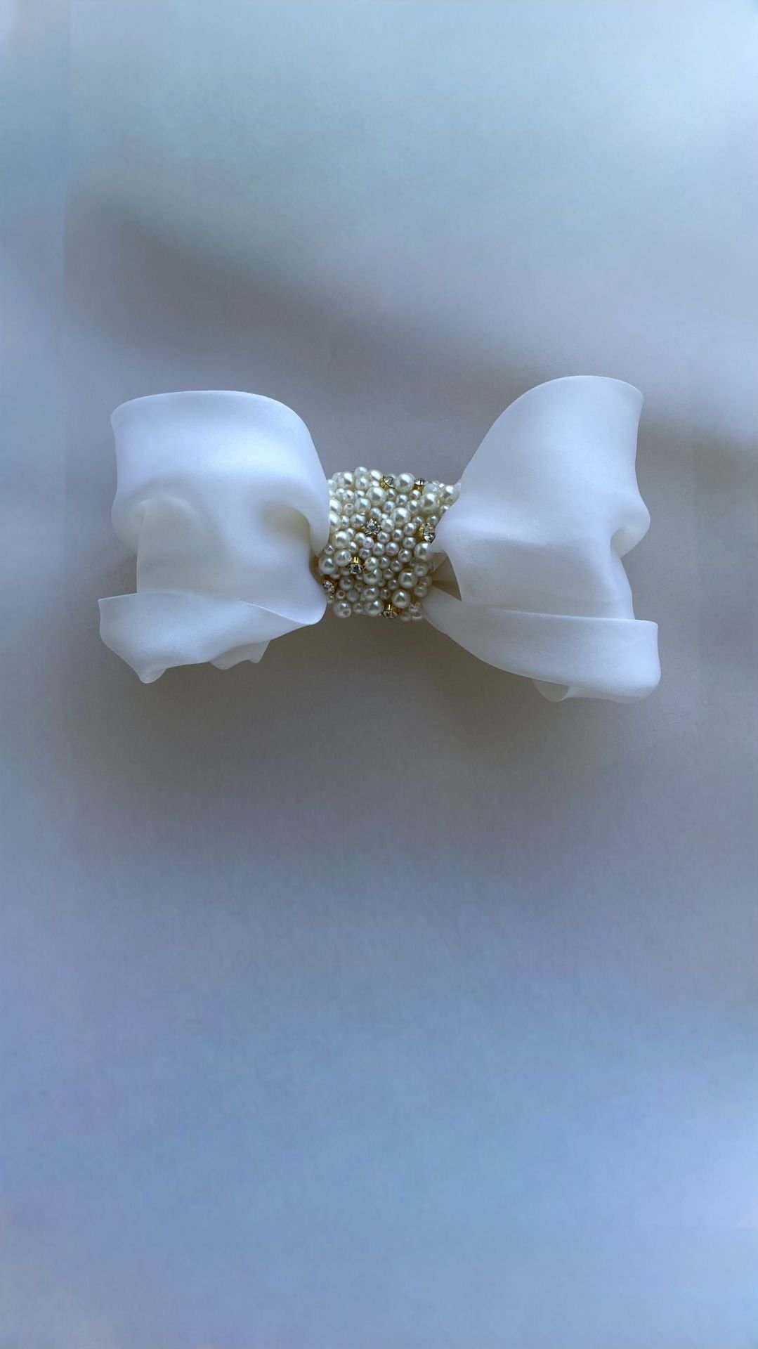 %100 İpek Tafta kumaşla drapeler verilerek çalışılmıştır,orta kısmındaki inci işlemeler boyutlu cam inciler ve kristal taşlarla İstanbul ofisimizde el işidir.